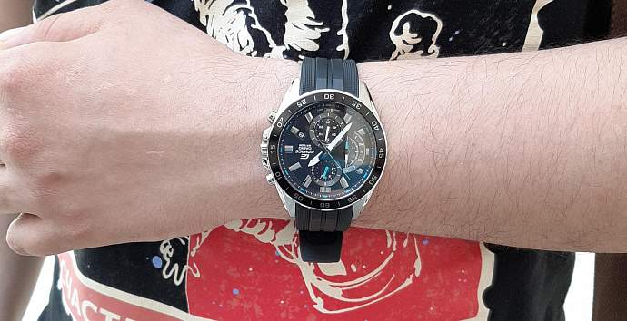Компания Casio выпустила пополнение у бренда Edifice — стильный хронограф из серии EFV-550.Стильные мужские часы выполнены в стальном корпусе черного цвета с полимерным ремешком.Окошки секундомера очень напоминают приборную панель автомобиля.