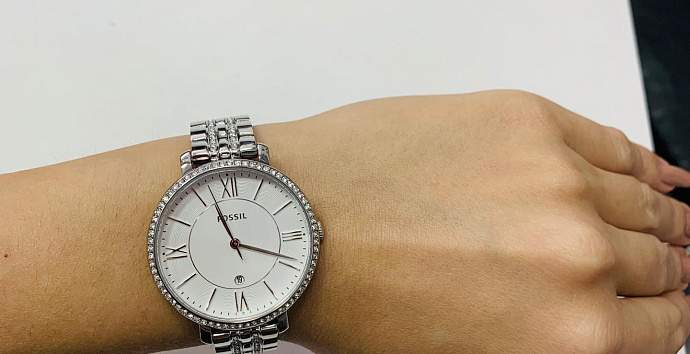 Модель Fossil Jacqueline Three-Hand Date Stainless Steel Watch. Классический стиль с элементами роскоши. Корпус и браслет из нержавеющей стали, циферблат украшен стразами. Отображение даты Отображение текущей даты в аналоговых часах.Застежка с тройным сгибом, расстегиваемая одним касанием.