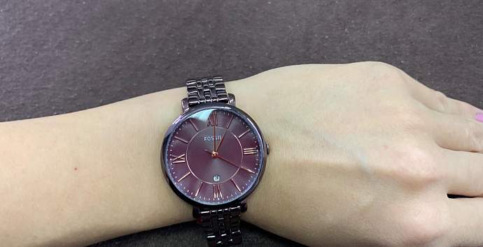 Часы Fossil Jacqueline Three-Hand Date Wine Stainless Steel Watch. Корпус  с браслетом из нержавеющей стали c PVD покрытием. Винный циферблат в розовых золотых тонах и указатели-римские цифры.  Отображение даты в положении «6 часов». Кварцевый механизм. Устойчивое к царапинам минеральное стекло.