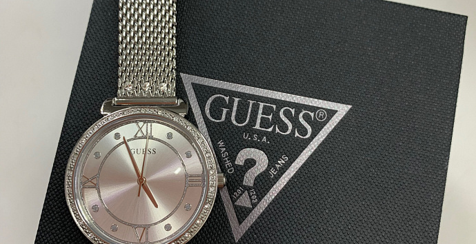 Часы украшены множеством кристаллов.